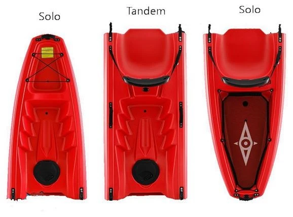avant et trappes de verrouillage rapide du milieu pour un accès facile à votre équipement, ainsi que des puits de réservoir avant et arrière avec des élastiques. Vous avez la possibilité de pagayer seul ou avec un ami – le tout en un seul kayak. Avec une seconde section médiane entre deux pagayeurs, vous créez un espace de stockage supplémentaire. Facile à posséder Le Falcon Tandem s’insère facilement à l’arrière d’une Toyota Prius. Donc, pas de porte-bagages, pas de levage et