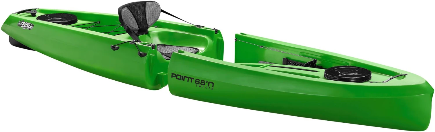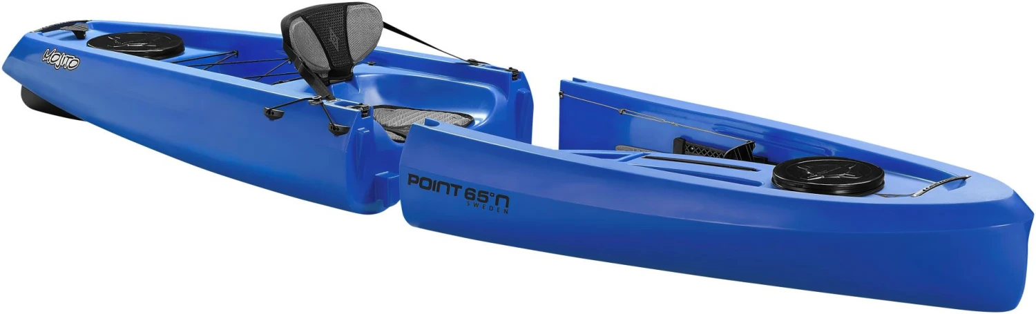 Le Point 65 Mojito offre un nouveau niveau d’innovation pour les kayaks récréatifs. Créé par l’ingénieur de conception Magnus de Brito, le Mojito est un kayak assis sur le dessus modulaire contemporain et performant. Un kayak amusant et polyvalent qui est exceptionnellement facile à transporter, à ranger et à transporter. La combinaison révolutionnaire solo/ tandem de Point 65 est un argument de vente étonnant et unique. Kayak de performance. Avec son gouvernail de quille et ses pédales de gouvernail faciles à régler, le Mojito se déplace droit comme une flèche et est facile à manœuvrer. La solution innovante Snap-Tap brevetée du Point 65 permet au siège simple de se démonter et de se