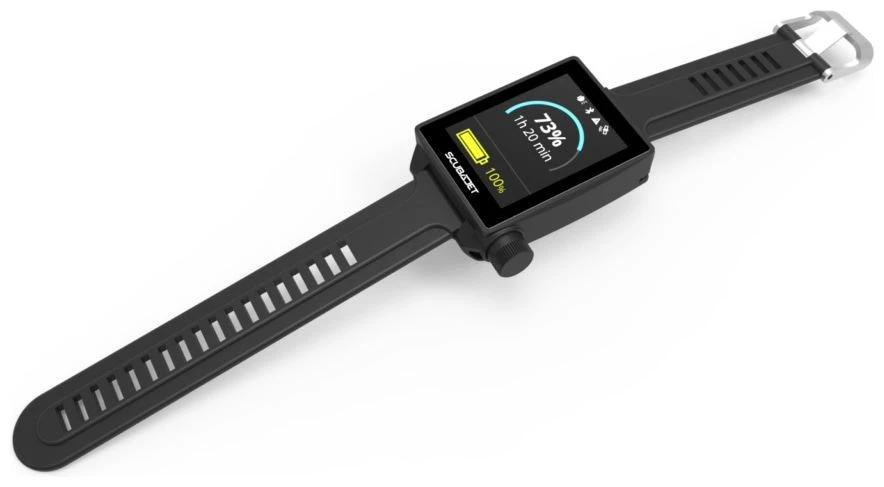L’écran de la montre affiche : Temps restant, état de la batterie et vitesse