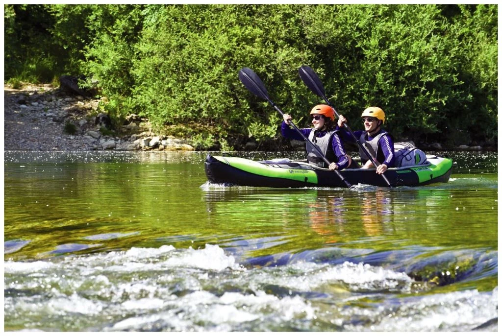 Il y a également beaucoup d’espace de stockage. Un filet sous lequel les bagages peuvent être transportés peut être fixé à l’avant comme à l’arrière. Le Sevylor Yukon peut être rangé rapidement et de façon compacte et pris comme un sac à dos